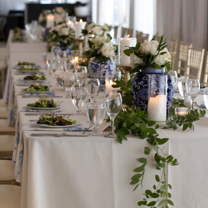 Nous vous fournissons uniquement du matériel durable : vraies nappes, serviettes en tissu, vase, etc. Un geste pour la planète, un gage d'élégance et aucune problématique de stockage à domicile.