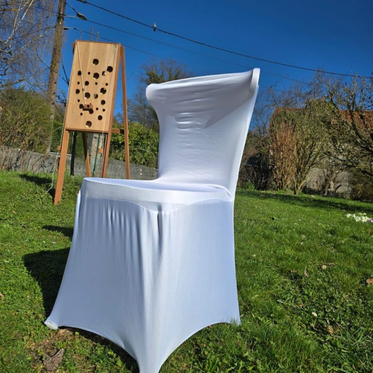 Nos couvre-chaises blancs s'adaptent à la plupart des modèles et apportent instantanément une touche chic et lumineuse à votre décoration. Bien moins cher qu'une location de chaise, c'est la solution la plus économique pour harmoniser votre salle de mariage ou de baptême à Montbéliard ou Belfort. Disponibles en retrait rapide pour vous simplifier la vie !